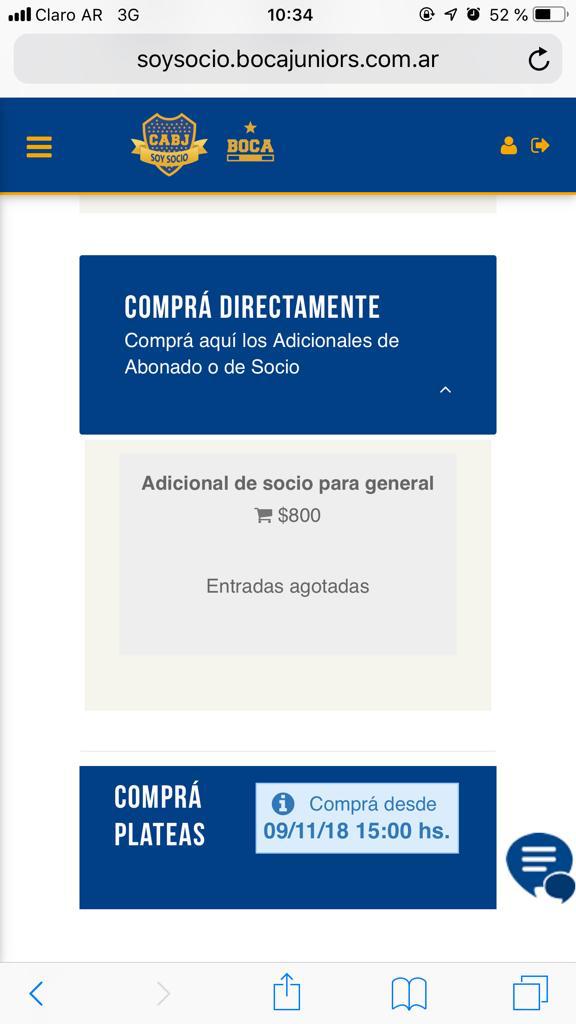 Duró un rato la agonía por sacar las entradas. Ya 10.34 decía que estaban agotadas. Incomprobable como muchas cosas que hace esta conducción de Boca con una alarmante protección mediática y sin dar la más mínima explicación al socio de Boca. Querían a estos tipos manejando el club, bueno ahí los tienen. Y no se olviden de la campaña que hacen a costillas de Boca y de los ingresos de Boca como es "Boca en tu barrio", eso para cuando vayan a votar en el 2019.