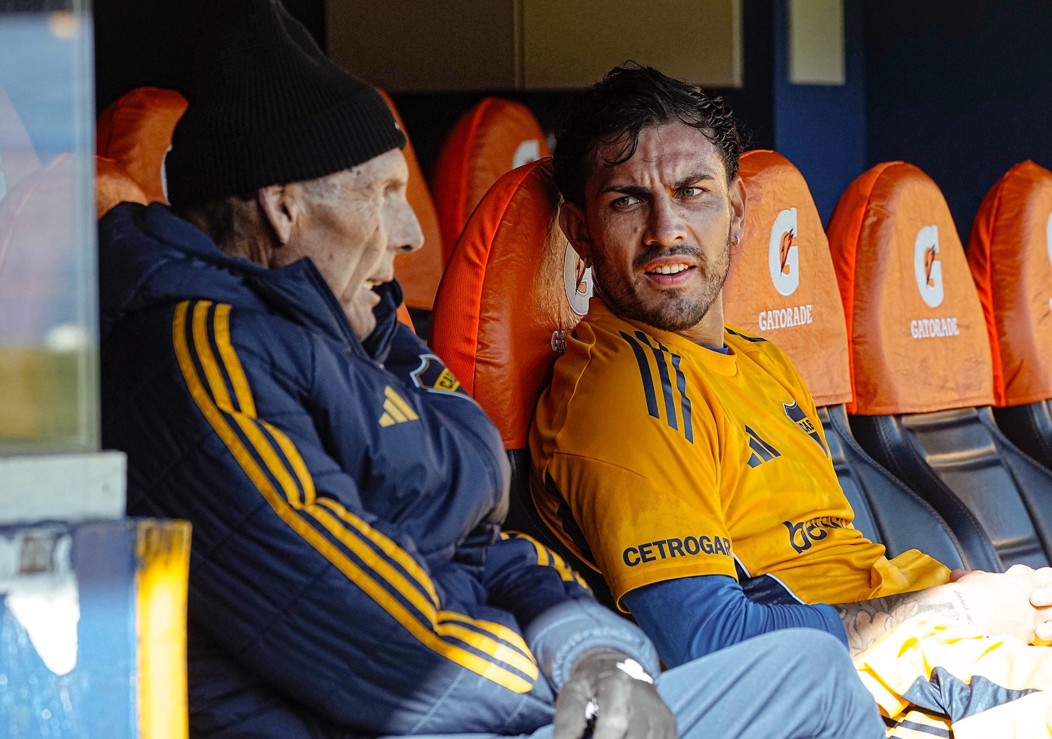 Con base en los indicios de la práctica, la posible alineación de Boca para el domingo sería: Agustín Marchesín; Juan Barinaga, Lautaro Di Lollo, Marco Pellegrino, Lautaro Blanco; Leandro Paredes, Rodrigo Battaglia, Brian Aguirre, Alan Velasco; Miguel Merentiel y Édinson Cavani.